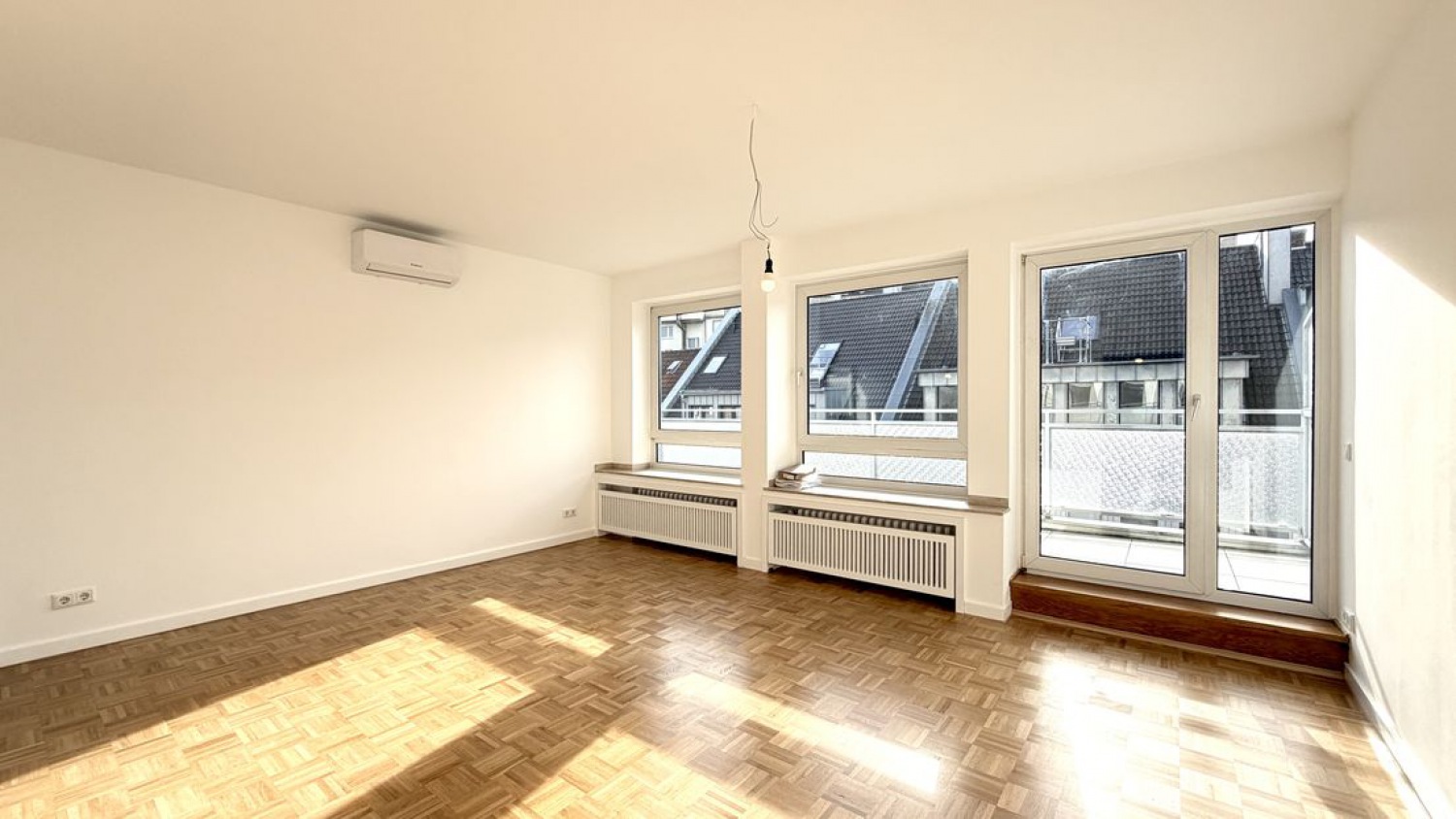 Die hier angebotene Wohnung befindet sich in absolut zentraler, aber dennoch sehr ruhigen Lage direkt im Stadtzentrum und beläuft sich auf ca. 77qm. Die Wohnung wurde aktuell vollständig kernsaniert und mit einer neuen Elektrik , sowie einem modernen Badezimmer ausgastet. Der elegante Parkettboden, wurde matt geölt und it weißen Sockelleisten optimal in Szene gesetzt und verleiht den Räumen somit eine warme Wohlfühlatmosphäre. Des weiteren sind alle Räume mit einer Klimaanlage ausgestattet und somit auch an heißen Sommertagen angenehm klimatisiert. Auch ein länglich um die Wohnung komplett herum laufender Balkon, welcher vom Wohnbereich und auch vom Schlafzimmer aus zu erreichen ist, lädt zum verweilen ein und bietet die Möglichkeit zu jeder Tageszeit ein Sonnenbad zu genießen. Da sich vor der Wohnung noch ein kleiner Vorraum befindet, welcher durch eine 2. Wohnungstüre verschlossen ist, sind jegliche Geräusche vom Treppenhaus abgeschirmt und nicht wahrnehmbar. Diese 2. Wohnungstüre bietet selbstverständlich auch noch eine zusätzliche Sicherheit. In der Wohnung selbst wird man dann von einer länglichen Diele optimal in alle Räume geleitet. Das Badezimmer verfügt über eine große Badewanne, ein großes Fenster, einen Handtuchhalterheizkörper und eine fast ebenerdige Dusche. Das Schlafzimmer bietet mit seinen knapp 20qm und der großen Fensterfront einen sehr geräumigen und ruhigen Rückzugsort, um zu entspannen. Eine kleine Abstellkammer steht im Dielenbereich ebenfalls zur Verfügung und kann für die Dinge des nicht alltäglichen Bedarfs hervorragend genutzt werden. Am Kopfende der Diele befindet sich dann das Herzstück der Wohnung. Der großzügige Wohnbereich ist durch die vielen Fenster zu jeder Tageszeit mit viel Licht durchflutet und bietet zudem einen großzügigen zum Wohnbereich hin offen gestalteten Küchenbereich, in dem sich eine großzügige Küche, wahlweise auch mit einer Kücheninsel integrieren lässt.
